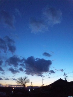 逆光の双子雲(2007/6/15 18:35撮影)